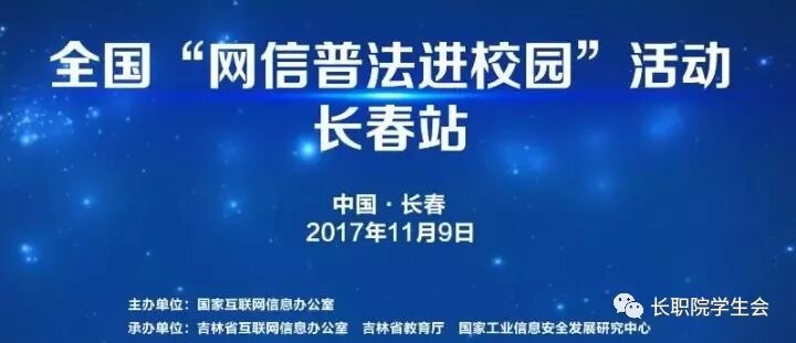 11月10日9:00—11:00,全国“网信普法进校园”活动长春站将举办“网信法治论坛”。