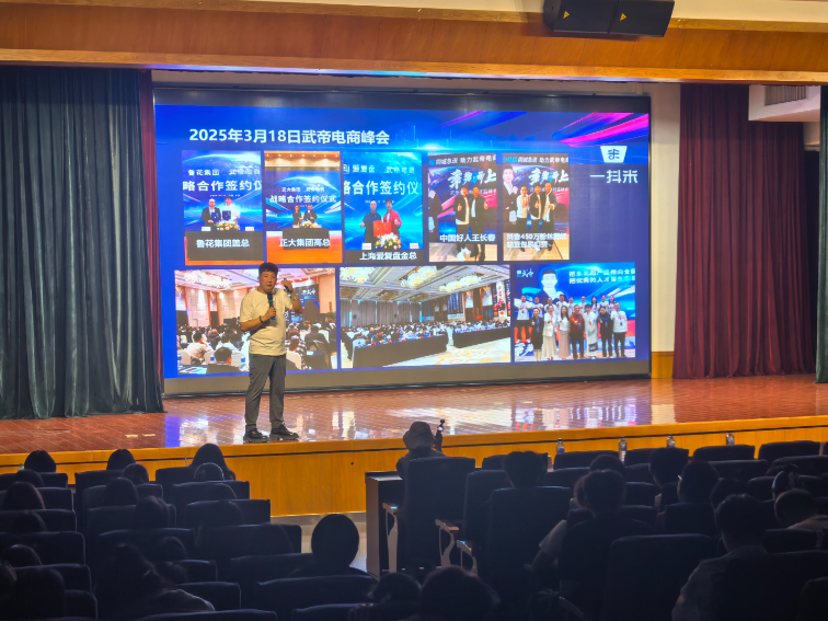 近日,一场抖音即时零售项目创业专题宣讲会在学校食堂三楼报告厅举行。活动邀请了武帝电商创始人、巨量引擎官方认证导师张志武来到校园,围绕“艺术专业+直播电商创业”主题,为近五百名大一新生带来了一堂紧贴行业趋势的创业启蒙讲座。
