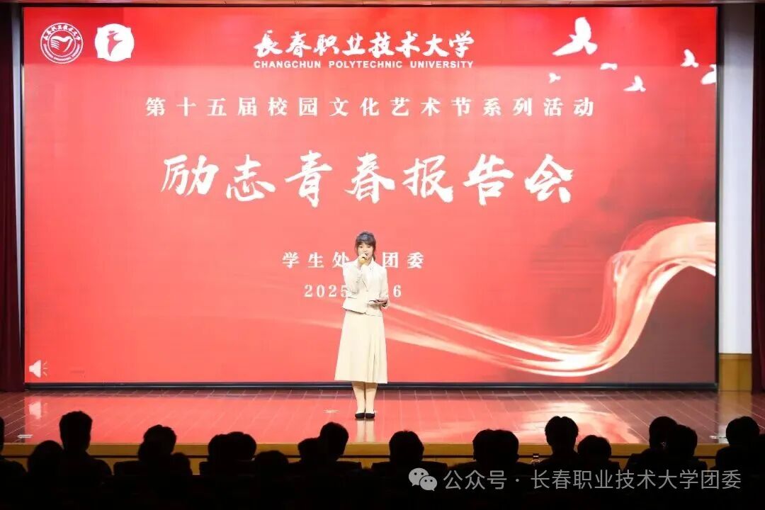为充分发挥先进典型的示范引领作用,落实立德树人根本任务,激励广大学子争做“有理想、敢担当、能吃苦、肯奋斗”的新时代青年,我校第十五届校园文化艺术节之“励志青春报告会”在会议中心举行。副校长朱国辉、蒋大明,纪委书记、三级高级监察官周敏与千余名师生代表一同参加了报告会。