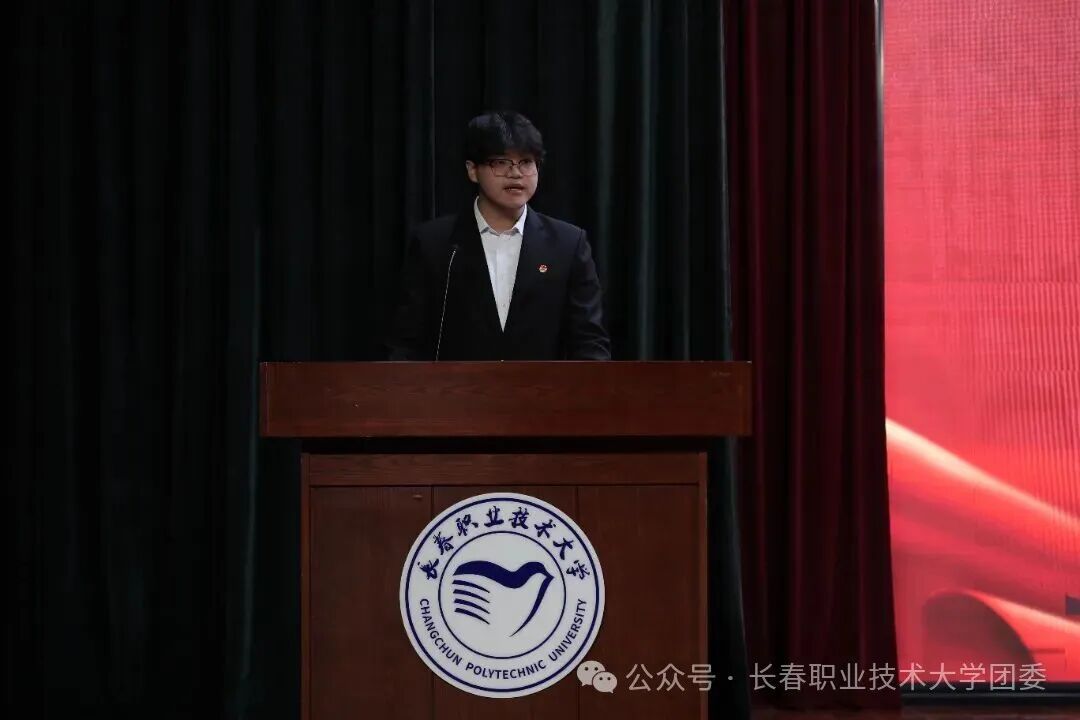 报告会最后,学校晨曦广播站成员以一首诗朗诵《强国有我,青春担当》,表达了青年一代将个人理想融入国家发展的坚定决心,铿锵有力的声音将现场氛围推向高潮。